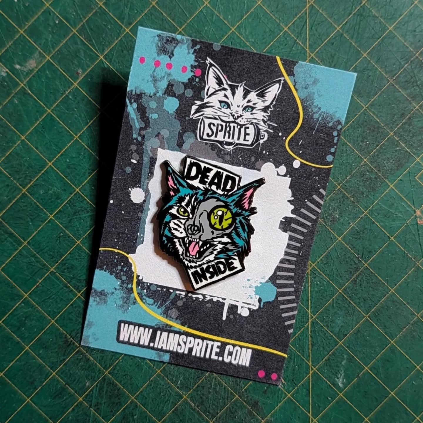 Cat charm/bag clip featuring the design of a cat holding a spray can.